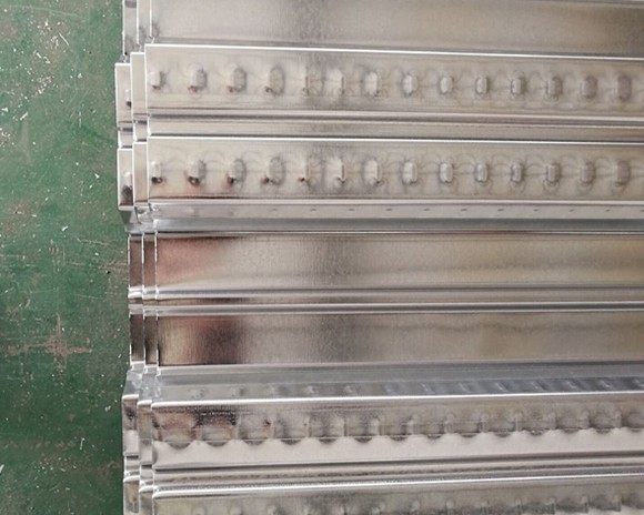 3:壓型板表面壓紋使樓承板與混凝土之間產生的結合力,使二者形成整體,配以加勁肋,使樓承板系統具有高強承載力。